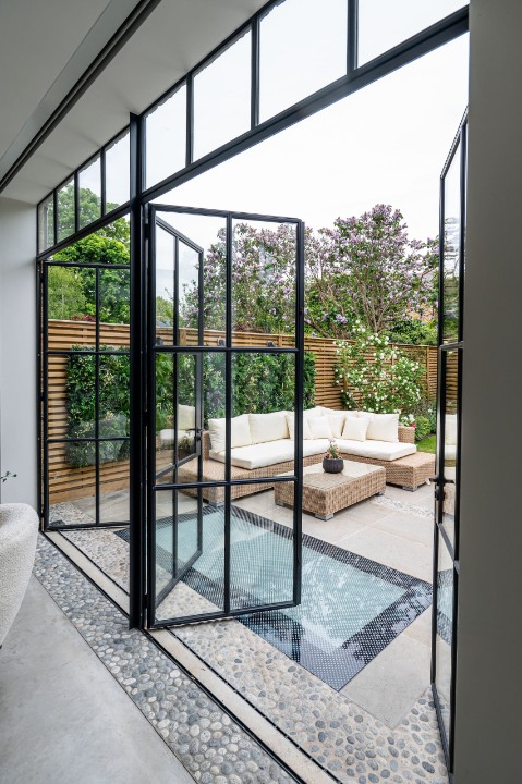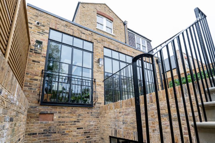To mirror the Crittall on the ground floor, Crittall external doors were installed to the basement achieving consistency across the whole rear extension and a stunning view of the property from the garden.