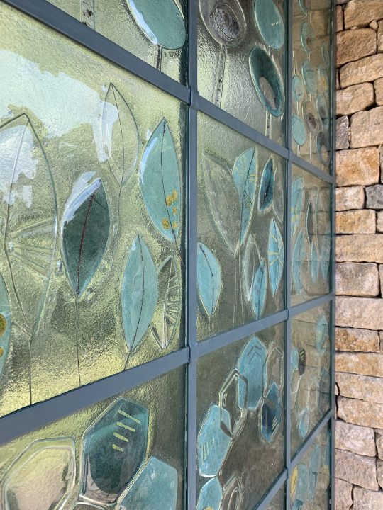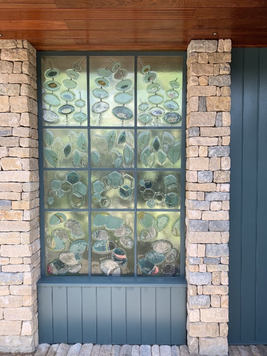 A Crittall Corporate W20 window was glazed with intricately designed glass created by artist Wendy Newhofer, and featured in the Warner’s Distillery Garden, designed by Helen Elks-Smith and built by Bowles and Wyer. The frame was painted in a Farrow & Ball which followed throughout the rest of the garden. The RHS explains: “This sheltered garden provides a relaxed space for socialising and engaging with family and friends. Central to the design is an impressive sheltered courtyard referencing the pastoral setting of Falls Farm, the heart of Warner’s Gin Distillery in rural Northamptonshire.”