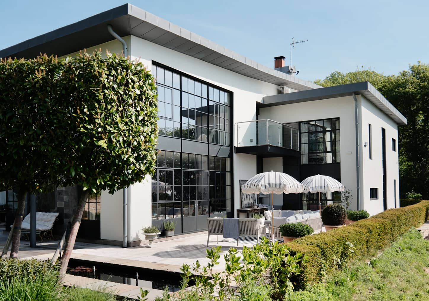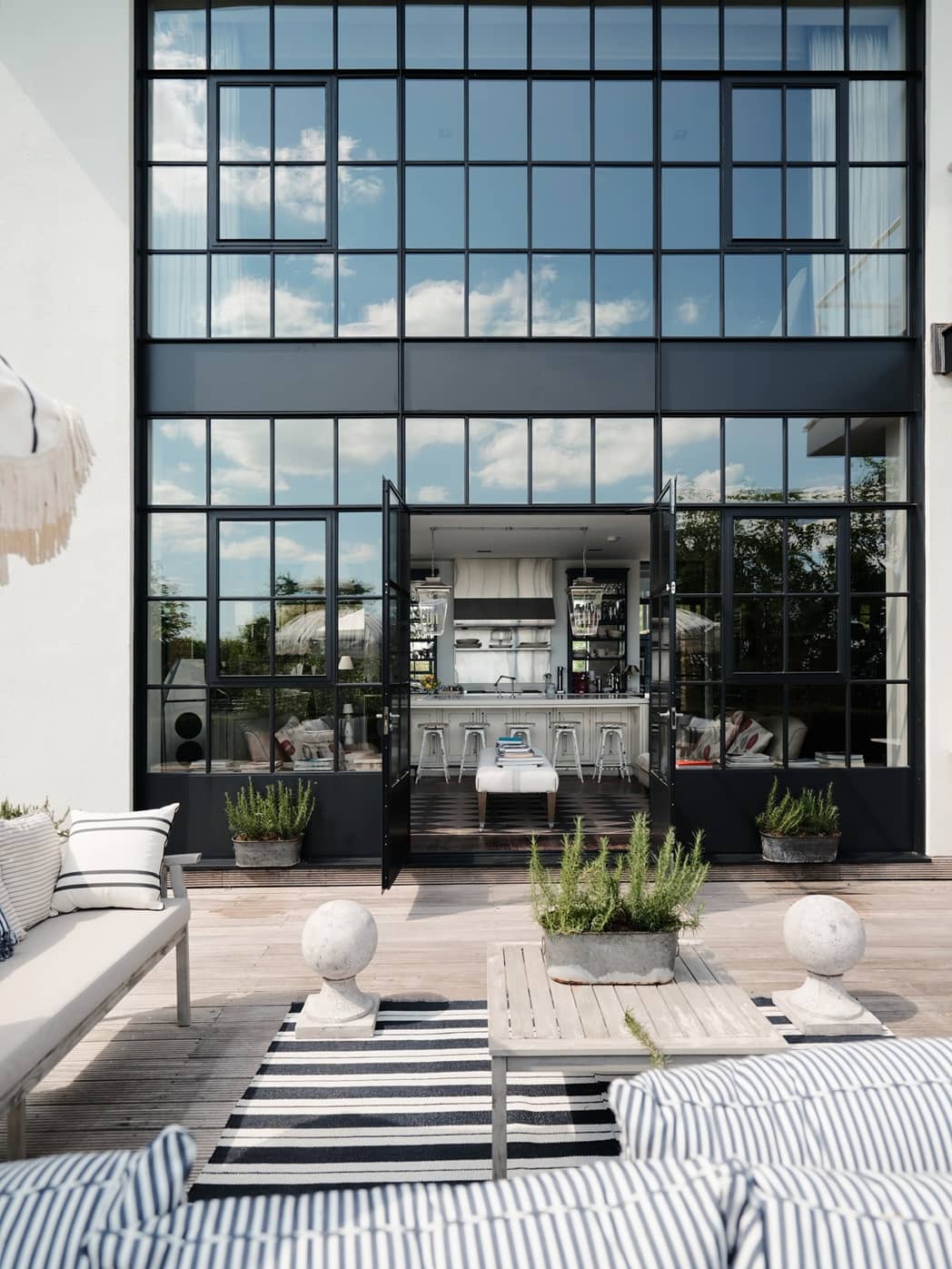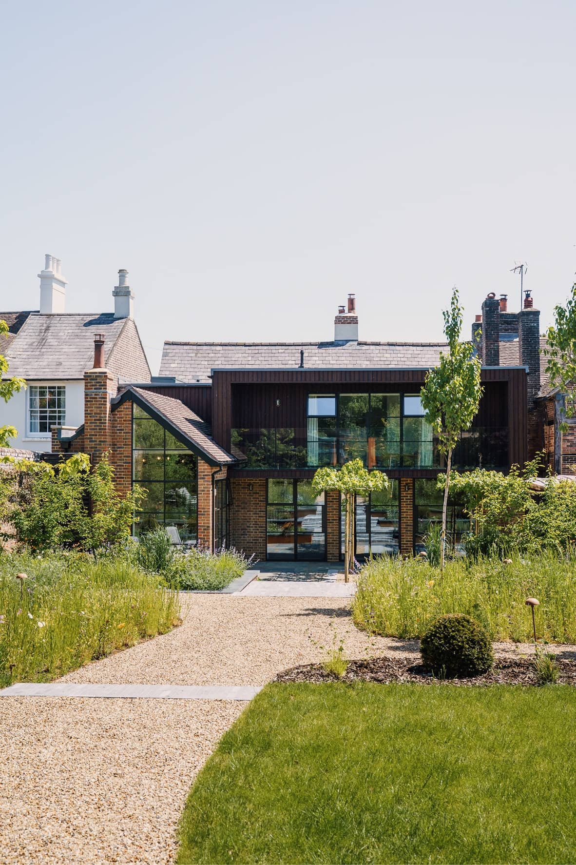 The steel glazing feels entirely at home within the contemporary architecture, enhancing its form without overpowering it.