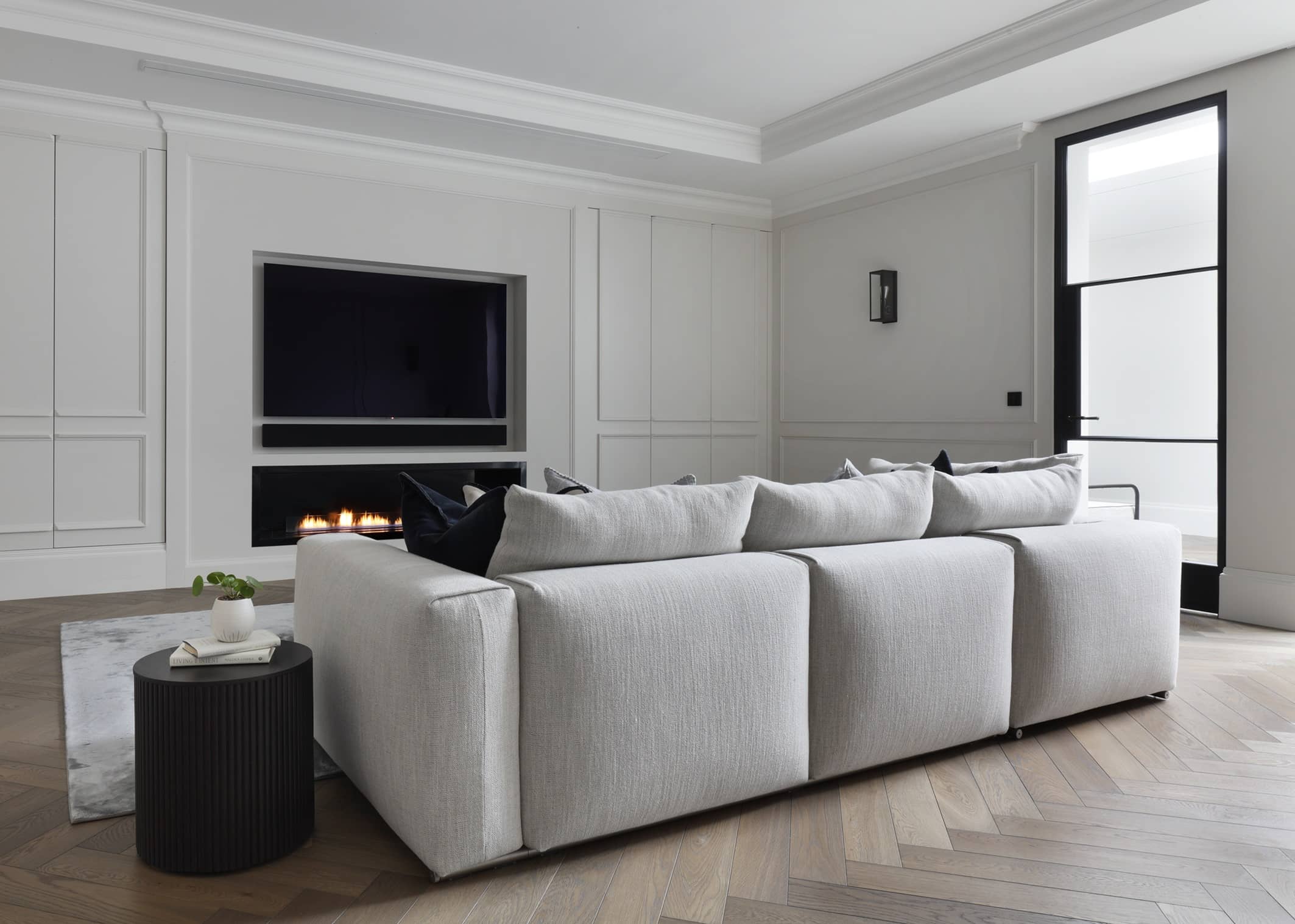This South West London project pairs design ambition with technical control. At its centre are bespoke Crittall pocket doors – a rare feature in residential settings – designed to deliver both architectural weight and flexibility.