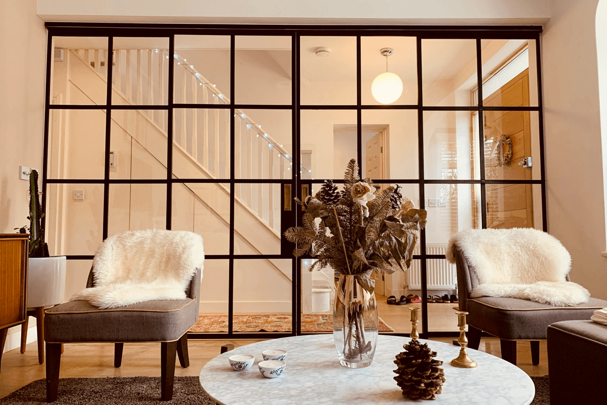 Create defined zones in an open-plan interior using a bespoke internal screen. Their stylish finish effortlessly maintains an airy, open feel while separating spaces like your kitchen, dining area, and living room. The acoustic properties of our screens make them a great choice for partitioning spaces like home offices where you may want privacy without feeling completely shut away from the rest of the house.