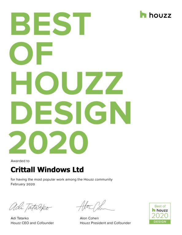 Crittall will be highlighted on the Houzz website and app. Also, a “Best Of Houzz 2020” badge will appear on winners’ profiles as a sign of their commitment to excellence.